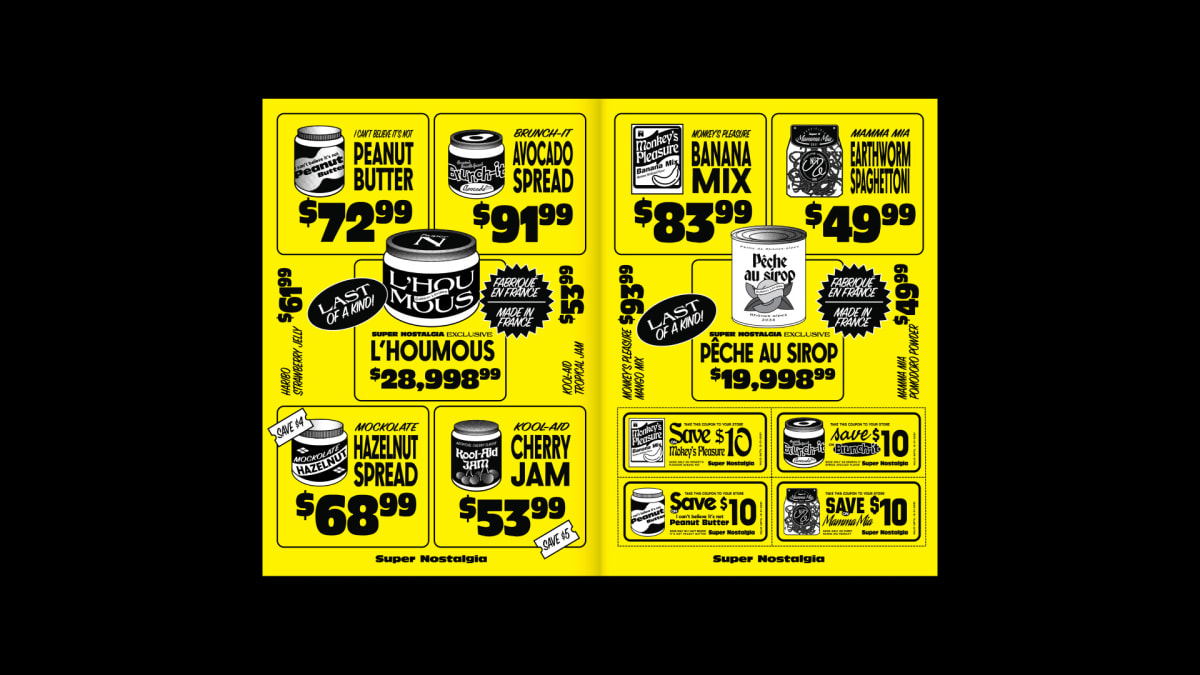 “They’ll try to sell the taste of it,” he says. The designer’s version of a peach, for example, comes in an Instagram-worthy can and reads “the last peach you’ll ever taste.” His avocado spread, meanwhile, comes in a jar with a playful label that reads “brunch-it.”