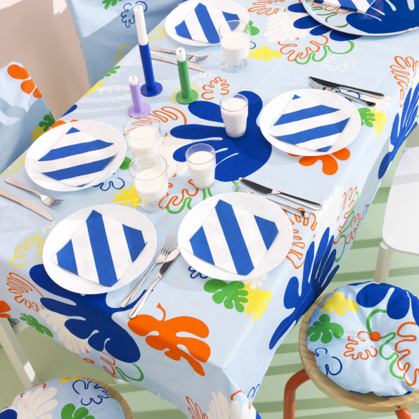The collection also features a rebirth of the Krypkornell pattern, described as a “happy multicolored print.” That same boost of color appears on the collection’s bedding, kitchen accessories, cushion covers, and more.