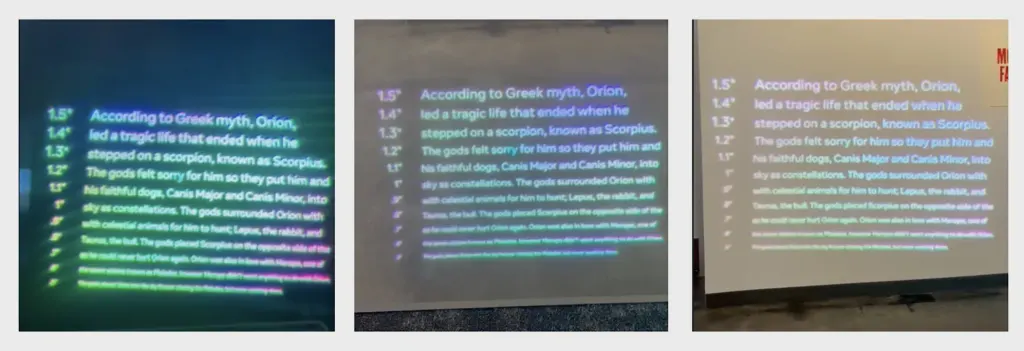 Meta already has a version of Orion running with twice the resolution of the demo I tested. But much like a projector works in your home, the bigger the image, the fuzzier it gets. And Meta is still mulling just how to tune their technology to consumers, to balance image expansion with clarity. (Technically, they call this measurement “pixels per degree.”)