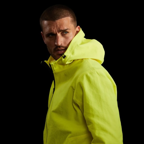 The neon-yellow hooded jacket that Vollebak cofounder and creative director Nick Tidball is showing me is made from a material called Dyneema, which his activewear company has claimed is the strongest material in the world. Tidball is not a salesman—that’s his identical twin brother, Steve, who’s Vollebak’s CEO. Nick takes pains to let me know he’s a straight shooter. “I don’t really pitch,” he says. “I just help people out.”