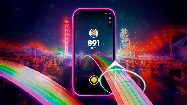With all that control, Live Nation wants to ensure its fans have a great time. And as hectic as music festivals may look, these are highly planned and controlled environments—which in many ways makes them the perfect test bed for pushing the bounds of augmented reality.We see that play out in the first AR “lens” that Snap has built for EDC. It’s a 3D map of the festival, complete with 20 animated landmarks, including giant glowing sculptures and stages. Load it up, and the map spins in your hand until it orients with your cardinal direction. Tilt your phone ever so slightly, and you can see a clearer overhead view. Tap on any of the stages, and the map will pull up a schedule and set list. And if you still don’t know how to make your way to the stage, you can pull up a compass that will point the way. As you walk, a number dial ticks down how many feet you are away from your destination.