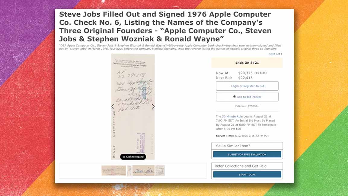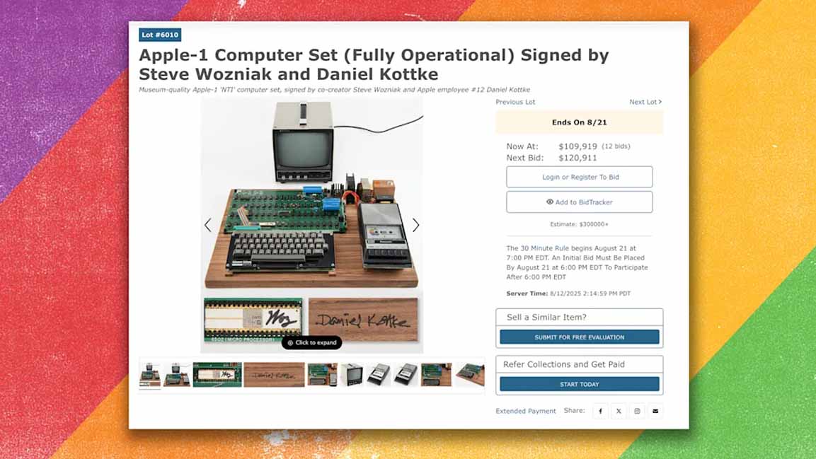 “Created over a decade ago, this signature auction tells Apple’s full arc—from garage-built Apple-1 to world-changing innovations,” says Bobby Livingston, executive vice president at the Boston-based auction house. “We source directly from early engineers, employees, and elite collectors, often bringing items to market for the first time. It’s Apple’s history told through the objects that made it possible.”