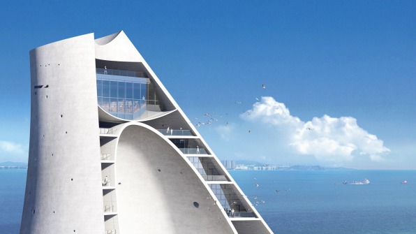 On the edge of a beach in the northern Chinese city of Yantai, a peculiar and highly specific building is nearing completion. The oceanfront structure is 160 feet high and shaped a bit like a cross section of a conical cooling tower in a massive energy plant.