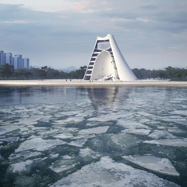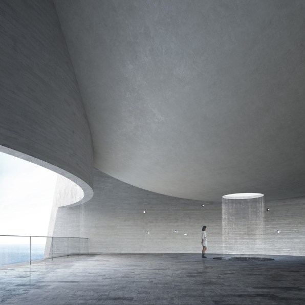 The sun isn’t the only natural force shaping the structure. It was also designed with an open inner parabolic shell that is intended to amplify the sound of the ocean’s crashing waves. As Li and Huang put it, “We hope this building helps to reconnect people back to the ancient reverence for nature.”
