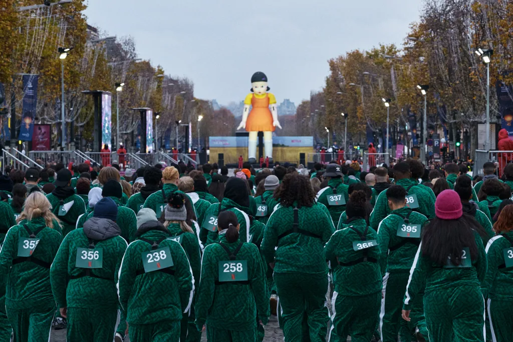 This translated into the idea of choosing to participate being a major part in all the live experiences across markets. Runners in tracksuits raced up the Champs-Élysées in Paris. Brazilian fans competed in Squid Game-themed competitions. The brand threw a Squid Game-themed rave in London.