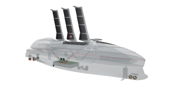 Onboard, in a concept design that the company revealed today, three first-of-a-kind massive “wing rigs,” or specially designed sails, can capture both wind energy and solar power. The sails are retractable, so the ship can travel under bridges, following the same coastal route that the company has used for more than a century. When the wind or sun conditions are right, they automatically rise, extending up to 164 feet high, with more than 8,000 square feet of wind surface and 16,000 square feet of solar panels. (In the summer, under Norway’s midnight sun, the solar panels can generate energy continuously.)
