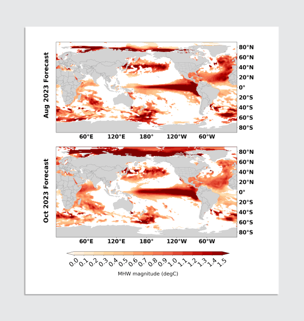 El Niño is contributing to the problem this year, but the longer-term trends of rising ocean heat are driven by global warming fueled by human activities.