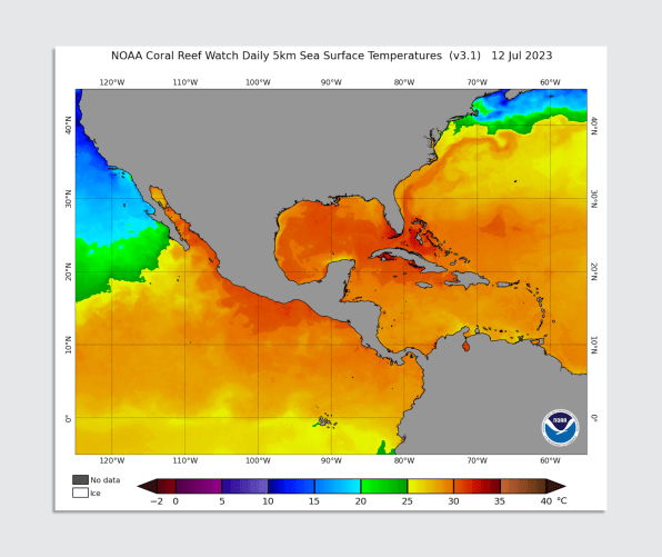 The water off South Florida is over 90 degrees Fahrenheit (32 degrees Celsius) in mid-July, and scientists are already seeing signs of coral bleaching off Central and South America. Particularly concerning is how early in the summer we are seeing these high ocean temperatures. If the extreme heat persists, it could have dire consequences for coral reefs.