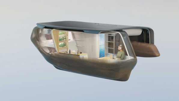 When they make the prototype, they’ll furnish the interior, with a goal of providing compact but comfortable living, with space for two double beds on two stories; an outdoor courtyard with seating; a bathroom with plumbing; and a kitchen with standard appliances plus a water filtration system and an aeroponic tower for growing vegetables. There will be smart LEDs embedded into the ceiling, and a steering unit with digital navigation. (The school declined to share a cost to build the prototype.)