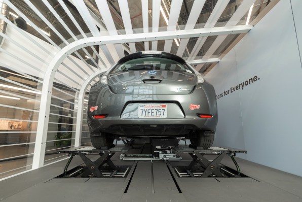 On a sunny Thursday morning in San Francisco, a driver pulled a Nissan Leaf into a building, parked on a platform, and stepped out of the car. Then the platform lifted the car in the air. Robotic arms carefully pulled out the electric car’s batteries and placed fresh, fully charged batteries inside. The whole process took around 10 minutes.