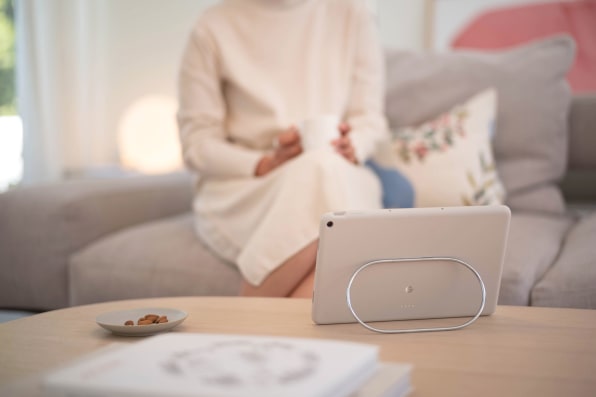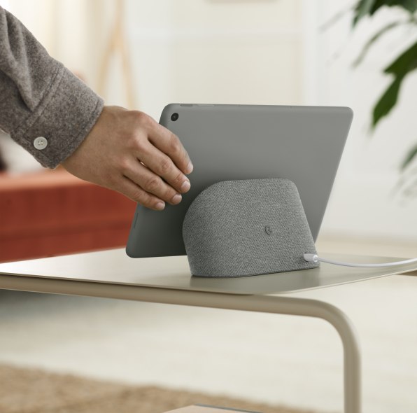In turn, the team created a charging speaker dock. When not in use, the tablet sticks via magnetism, stays charged, and serves as a smart display. (The dock is also a good angle for video calling, and I can’t help but wonder how it’d feel as a tiny computer with a bluetooth keyboard attached.)