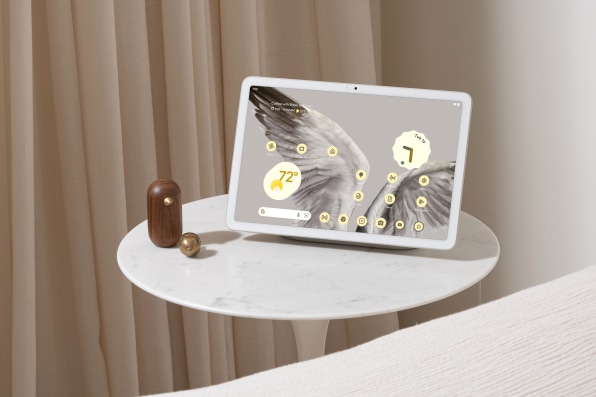 “Cases can feel flimsy or prescriptive,” says Olsson, whereas the Pixel Tablet can tilt with all of the fine control of a laptop screen. As an added bonus, that steel ring slips perfectly into the back seat pocket on an airplane, so the tablet can float in front of your eyes. No touching necessary.