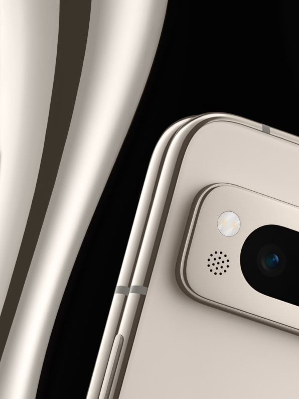 Both the hinge and the camera bar shine to get your attention, thanks to their mirrored aluminum finish. That fully glam camera bar has been a surprising design motif within the Pixel line, which had originally favored a more muted two-tone approach that made the camera disappear into the body.