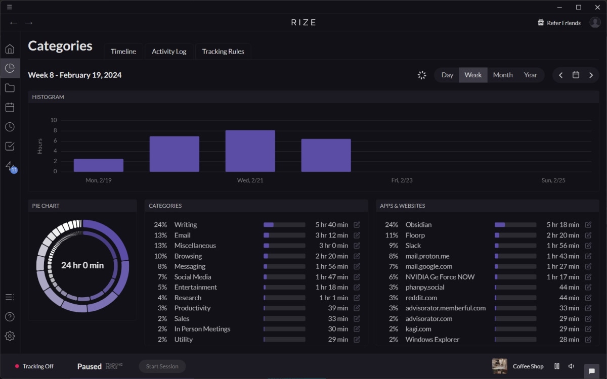 In the end, Rize felt like it was requiring too extra brainpower just to babysit the software, and I spent some long stretches with the app turned off just to avoid its nags. Doing so wasn’t great for my productivity scores, but I’m not sure it hindered my actual productivity all that much.
