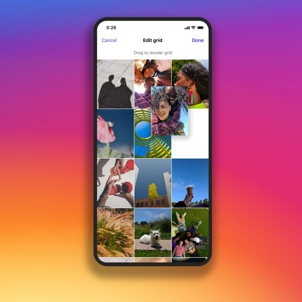 Adjust the crop of grid images: Users will soon be able to customize how their posts appear on the grid by letting them adjust the display crop of images and even reorder their grid entirely.