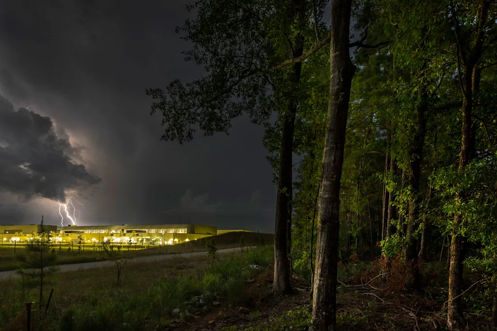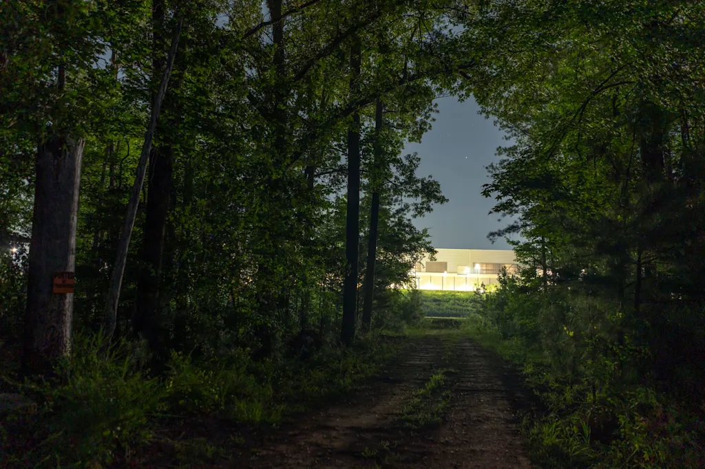 With no official notice to Morris from Meta or surrounding Newton County representatives, the oak forest across her dirt road was felled; eventually, a white glow from a row of perimeter spotlights flooded their home nightly. “Nature was run out of there completely,” Morris says.